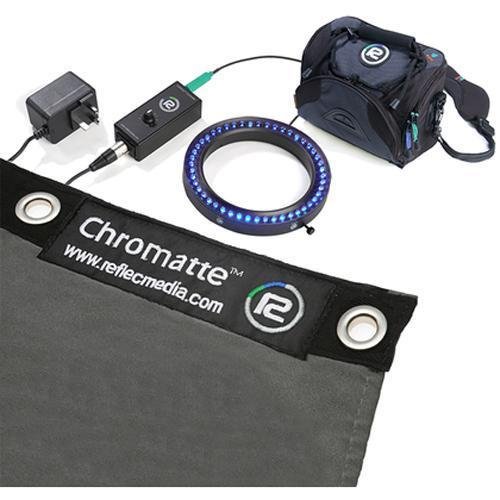 This Studio Bundle includes a 16ft 4in x 13ft 1in curtain, Small Blue LiteRing, control box and power supply (small LiteRing adapter required). This is the perfect solution to your Chroma Key needs. The Chroma key process requires that the background is evenly lit to produce a flat consistent color. Rather than the color being in the background the Chromatte fabric contains thousands of tiny aluminum coated glass beads that reflect light back to its source. The blue light required to Chroma key is provided by a camera-mounted ring of LED’s, the LiteRing. The low (10 watt) light emitted from the LiteRing is bounced back off the Chromatte fabric straight into the camera lens. The camera therefore sees the background as an even colored blue backdrop. With the LiteRing on the camera lens, alignment is never a problem. The control box allows adjustment of the output of the LiteRing for perfect balance in all situations. Reflecmedia RM 1123WSB Replaces: RM 1123SB